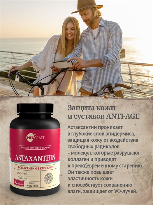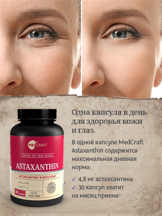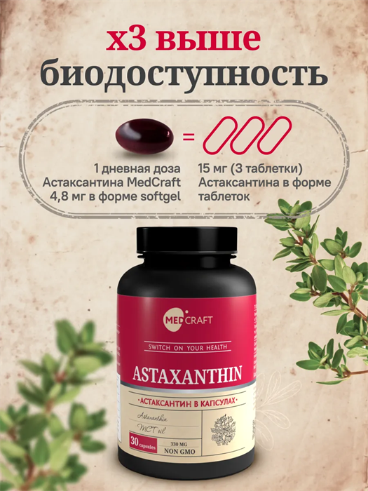 MedCraft Астаксантин – это БАД для нутритивной поддержки антиоксидантной защиты организма, здоровья кожи и комфортного состояния глаз при современных нагрузках.