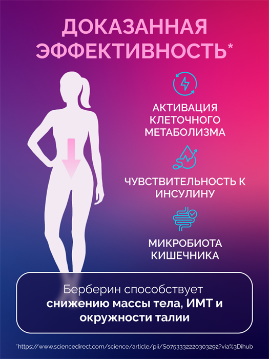 Вместе берберин и хром образуют комплексную нутритивную поддержку для обмена веществ и пищевых привычек.