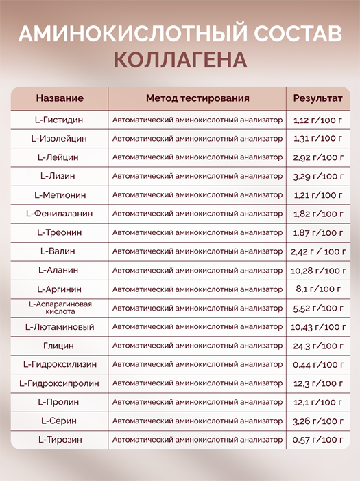 Формула содержит типы коллагена, которые широко представлены в коже, связках и других элементах соединительной ткани.