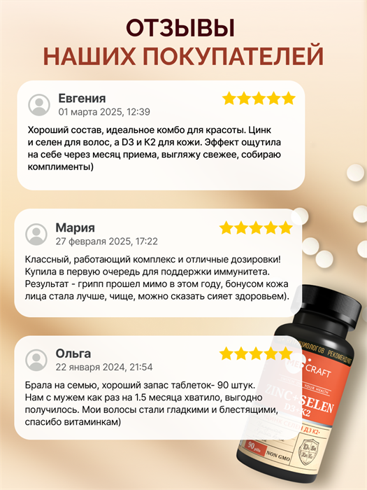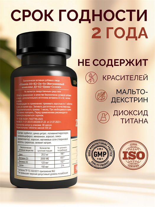 Цинк Селен с витаминами D3 K2, комплекс для иммунитета и красоты, 90 таблеток - это уникальное сочетание цинка, селена, витамина D3 и K2, которое поможет вам поддерживать здоровье и красоту вашего организма.