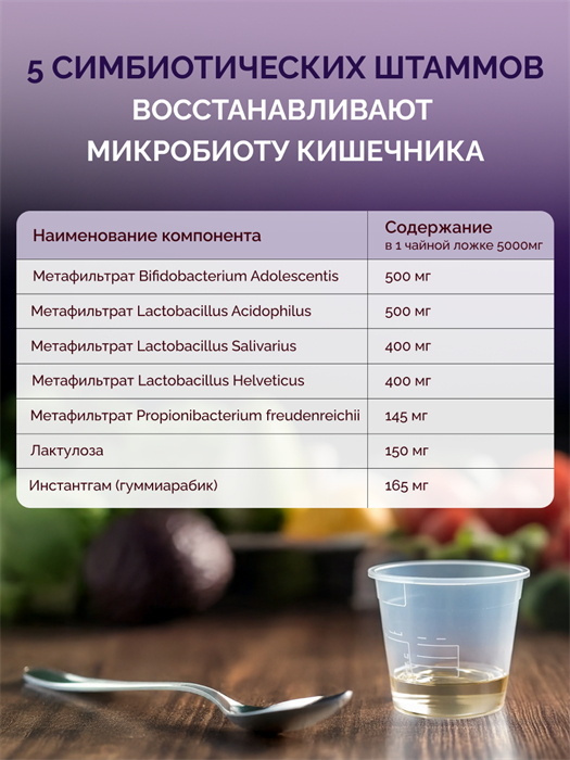 - чистый состав без ароматизаторов и подсластителей - биодоступная жидкая форма, не требует особых условий хранения - 5 самых важных штаммов метабиотиков, не содержит живых бактерий - не содержит лактозу и белок молока (подходит при непереносимости лактозы) - совместим с приемом антибиотиков