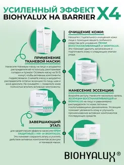 1. Нанести полфлакона сыворотки Biohyalux HA Barrier Conditioning Single Use Essence.