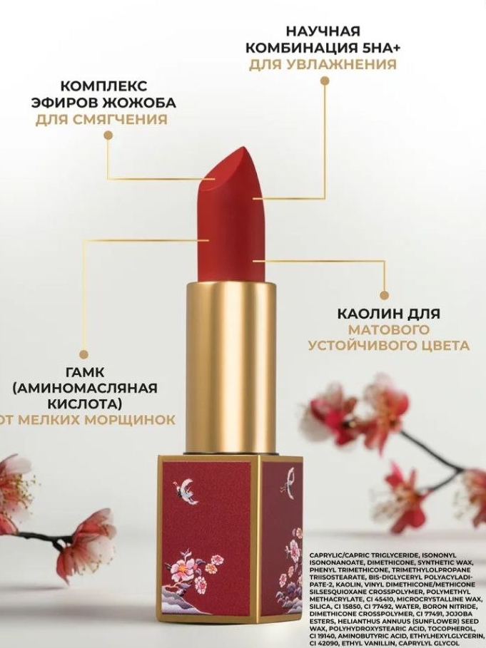 Yongle Red — это не просто помада, а статусный аксессуар. Ее роскошный тон дополнит деловой лук, вечерний наряд или повседневный образ, добавив нотку элегантности. Позвольте губам говорить за вас!